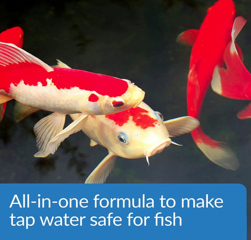 Pond AQUA ESSENTIAL water conditioner is a highly concentrated all-in-one water conditioner that instantly makes tap water safe for fish by removing chlorine, chloramine and detoxifies heavy metals commonly found in tap water. Pond AQUA ESSENTIAL water conditioner instantly removes toxic ammonia, nitrate, and nitrite levels in your pond. Toxic ammonia is continually released by fish through their gills, urine, and solid waste. Uneaten food and decaying organic matter also add ammonia. Small amounts of ammonia stress fish; large amounts of ammonia will kill fish. This unique formula binds with ammonia, nitrite, and nitrate rendering them non-toxic and allowing the biofilter to remove them more efficiently.